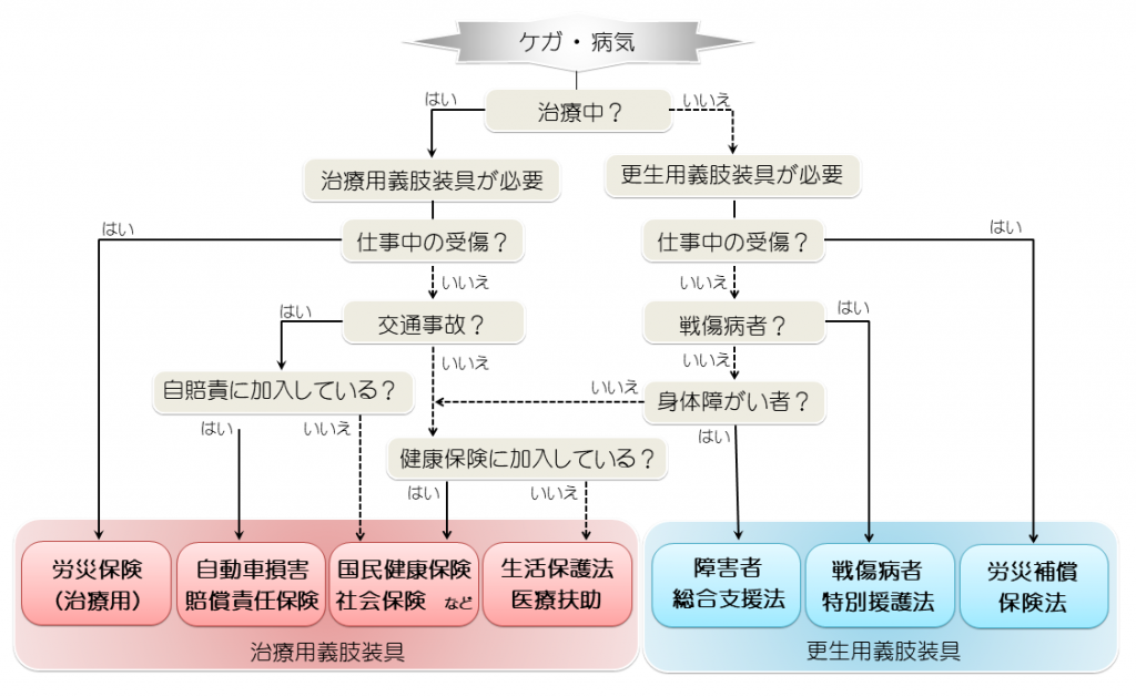医師の処方に基づき装着した義肢装具は、該当する制度により支給方法・申請方法が異なります。
